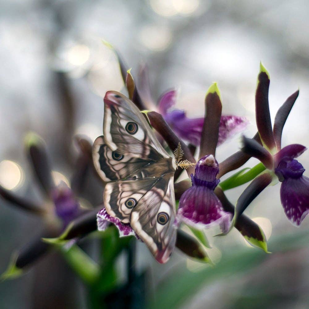 These life-like paper moths are printed double-sided on heavy-weight shimmer paper, and are expertly lasercut with a precise level of detail (you can see the individual little antennae, just like on a real moth). These ready-to-use vegan cut-outs are based on real specimens, and accurately depict their size and color as closely as possible.