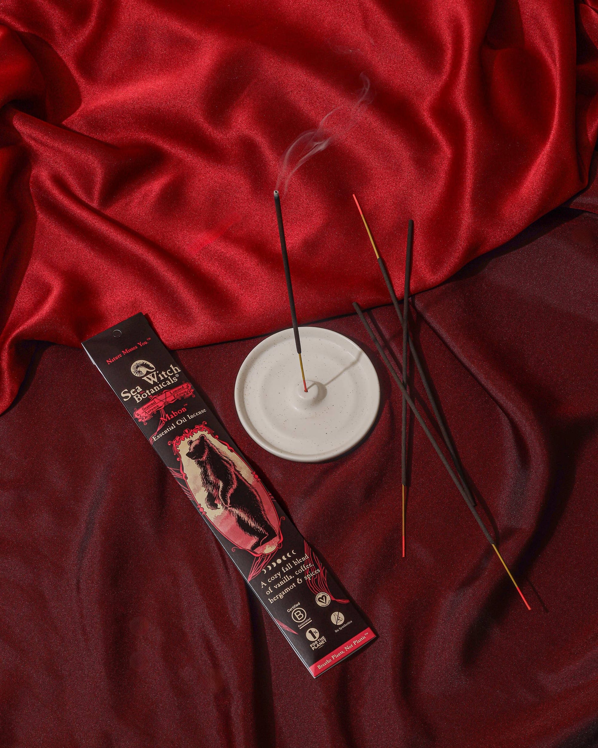 Mabon All-Natural Essential Oil Incense embodies the kind of steamy autumnal comforts you'd want to sip from a hot mug on a chilly day. Made with real vanilla, coffee, and bergamot, spiced with nutmeg and clove, and kissed with a cedarwood fog, this cozy blend evokes the best of fall.